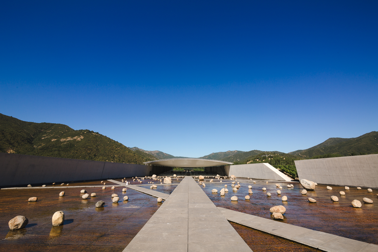 En 2007, se realizó un concurso de arquitectura que finalmente resultó en la elección de Smiljan Radic (en sociedad con Loreto Lyon) como el arquitecto principal y diseñador de la bodega, con su inspirador y creativo diseño. Enclavado entre las montañas, rodeado de magníficos valles y los inmensos Andes como escenario, la bodega fue cuidadosamente diseñada para producir un mínimo impacto en el paisaje natural del valle.